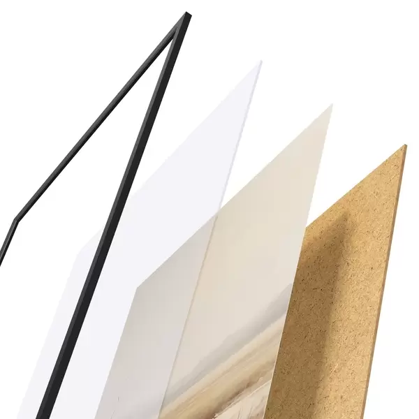 Постер складається з рами, оргскла, надрукованого зображення та підкладки з ДСП. Завдяки кріпленням на звороті плакат можна одразу ж повісити на стіну.