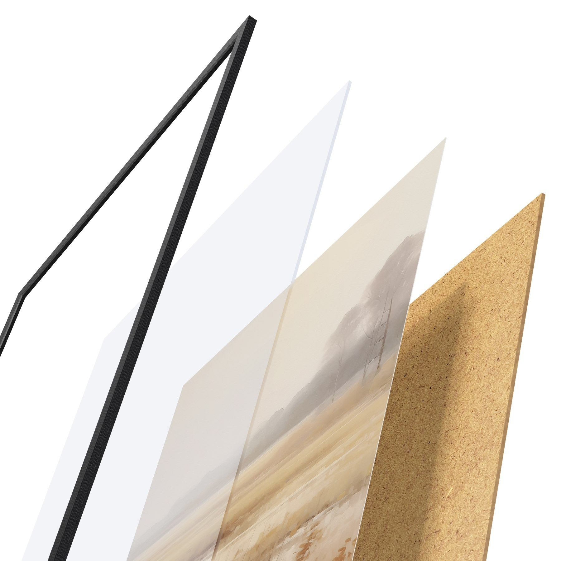 Постер складається з рами, оргскла, надрукованого зображення та підкладки з ДСП. Завдяки кріпленням на звороті плакат можна одразу ж повісити на стіну.
