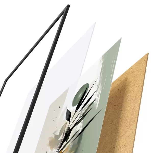 Постер складається з рами, оргскла, надрукованого зображення та підкладки з ДСП. Завдяки кріпленням на звороті плакат можна одразу ж повісити на стіну.