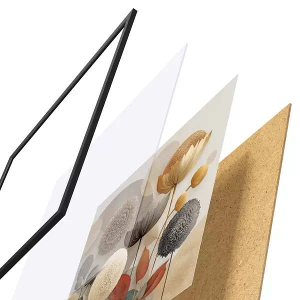 Постер складається з рами, оргскла, надрукованого зображення та підкладки з ДСП. Завдяки кріпленням на звороті плакат можна одразу ж повісити на стіну.