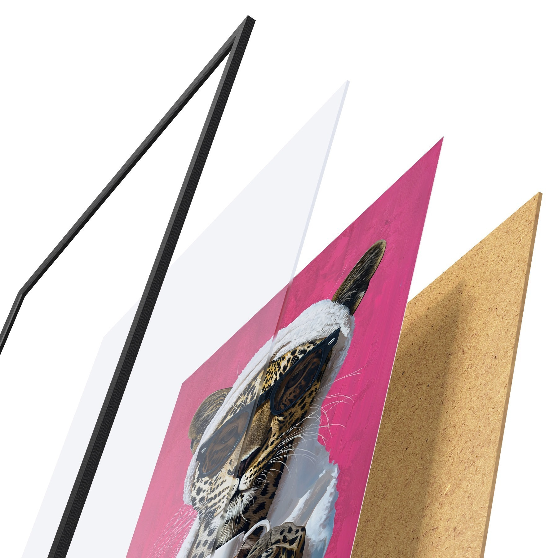 Постер складається з рами, оргскла, надрукованого зображення та підкладки з ДСП. Завдяки кріпленням на звороті плакат можна одразу ж повісити на стіну.