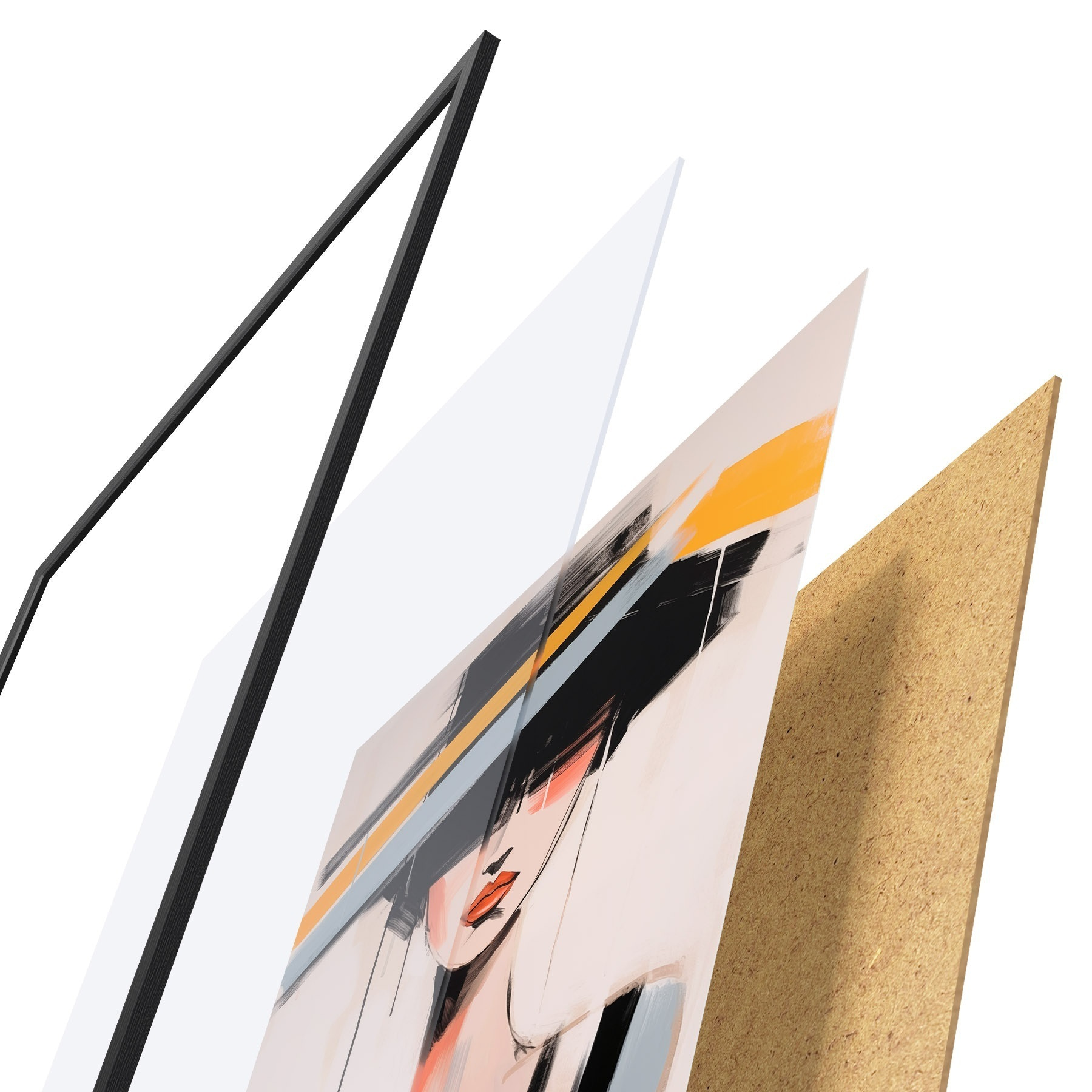Постер складається з рами, оргскла, надрукованого зображення та підкладки з ДСП. Завдяки кріпленням на звороті плакат можна одразу ж повісити на стіну.