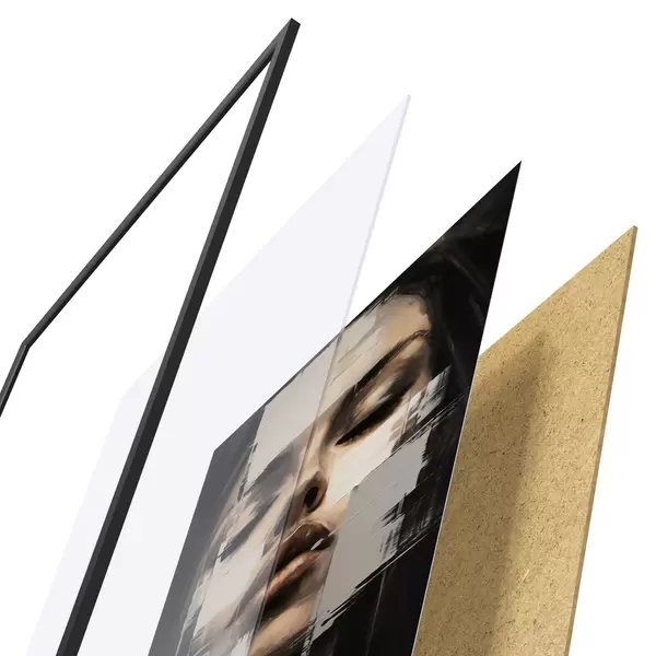 Постер складається з рами, оргскла, надрукованого зображення та підкладки з ДСП. Завдяки кріпленням на звороті плакат можна одразу ж повісити на стіну.
