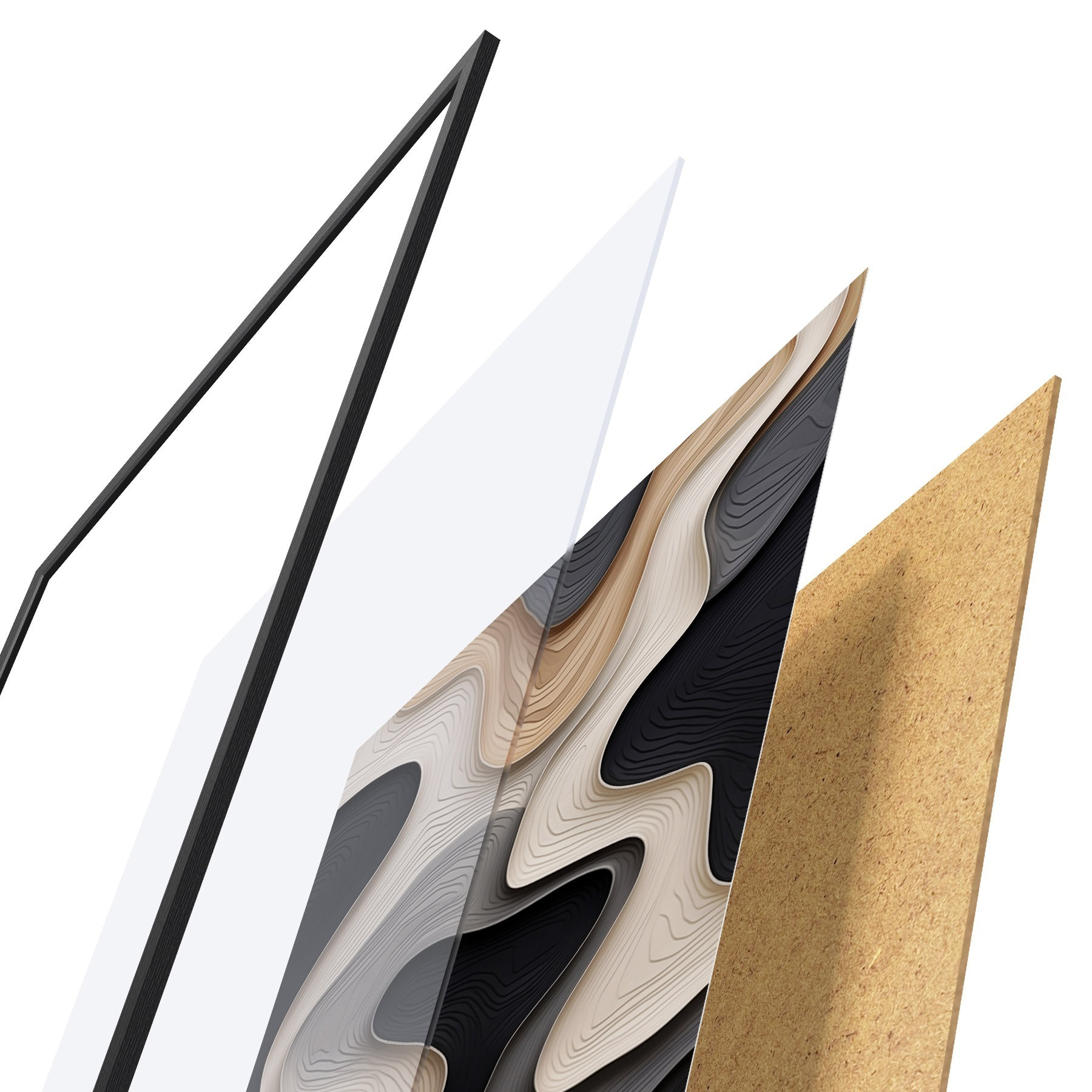Постер складається з рами, оргскла, надрукованого зображення та підкладки з ДСП. Завдяки кріпленням на звороті плакат можна одразу ж повісити на стіну.