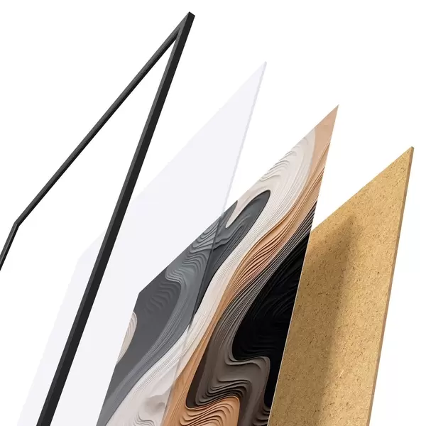 Постер складається з рами, оргскла, надрукованого зображення та підкладки з ДСП. Завдяки кріпленням на звороті плакат можна одразу ж повісити на стіну.