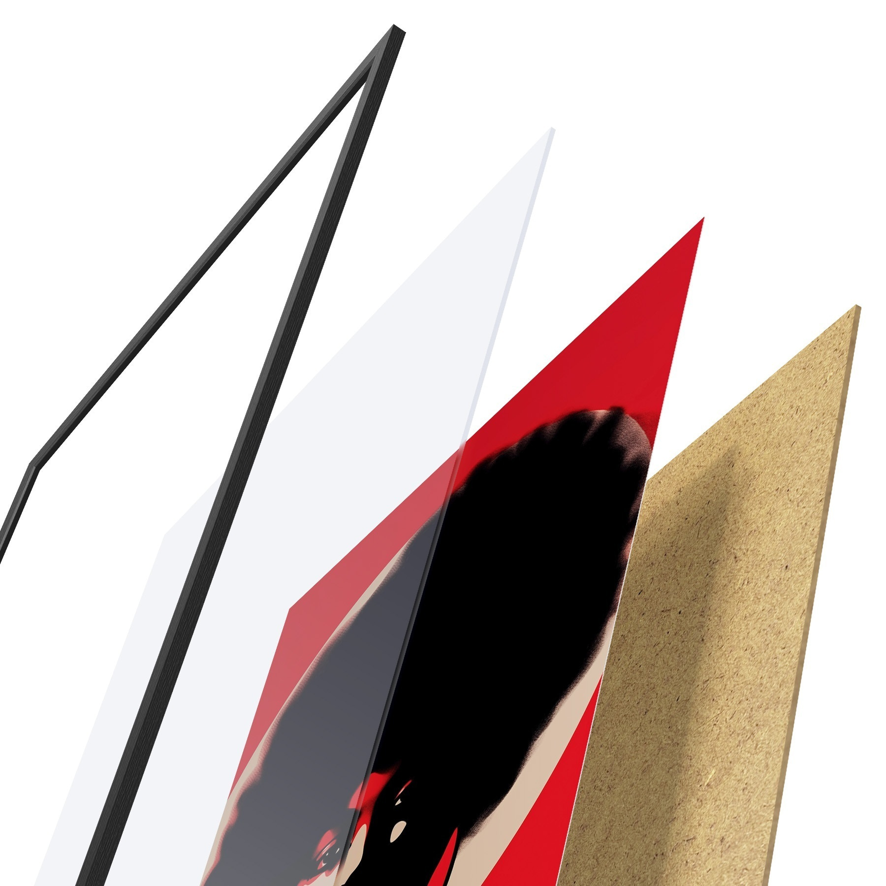 Постер складається з рами, оргскла, надрукованого зображення та підкладки з ДСП. Завдяки кріпленням на звороті плакат можна одразу ж повісити на стіну.