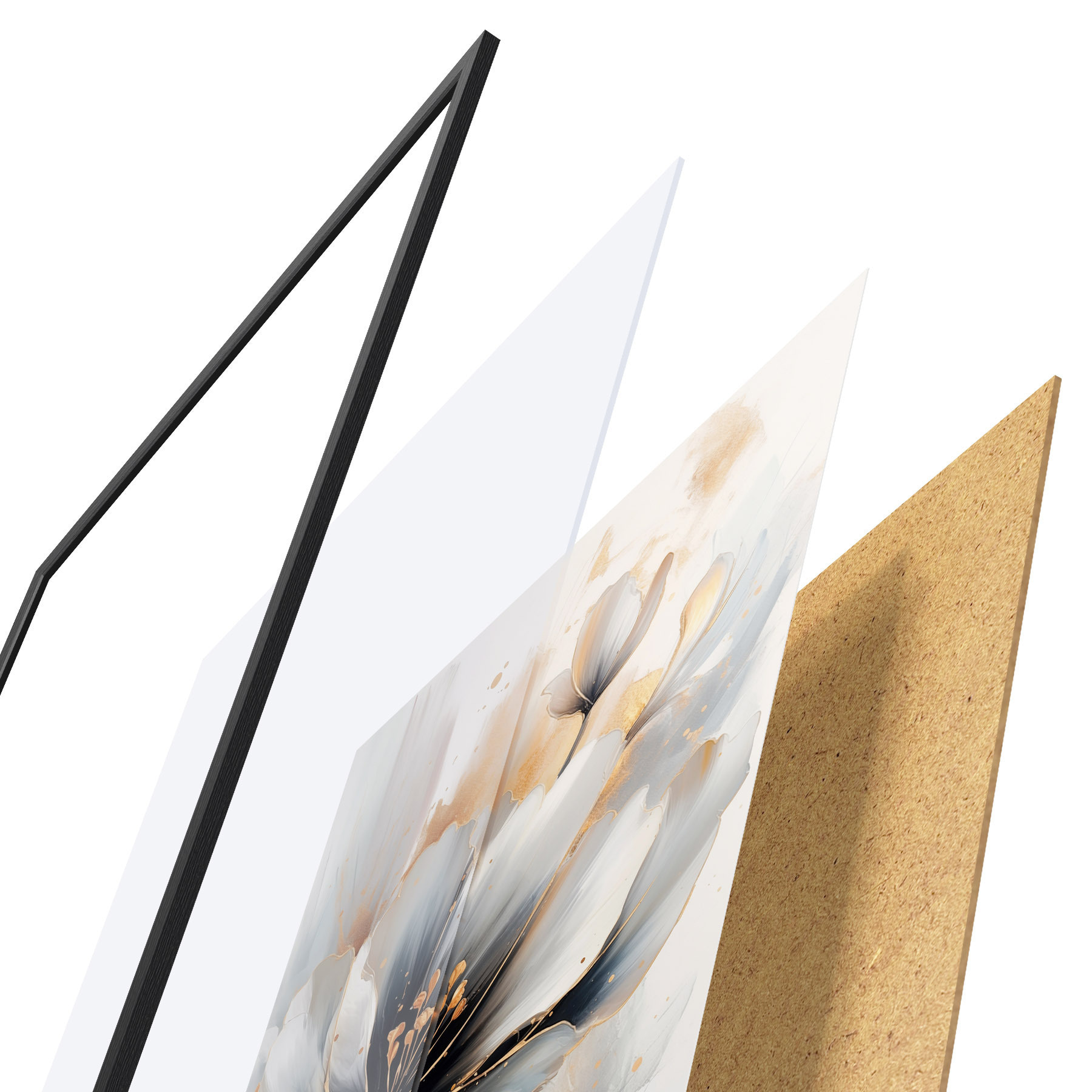 Постер складається з рами, оргскла, надрукованого зображення та підкладки з ДСП. Завдяки кріпленням на звороті плакат можна одразу ж повісити на стіну.
