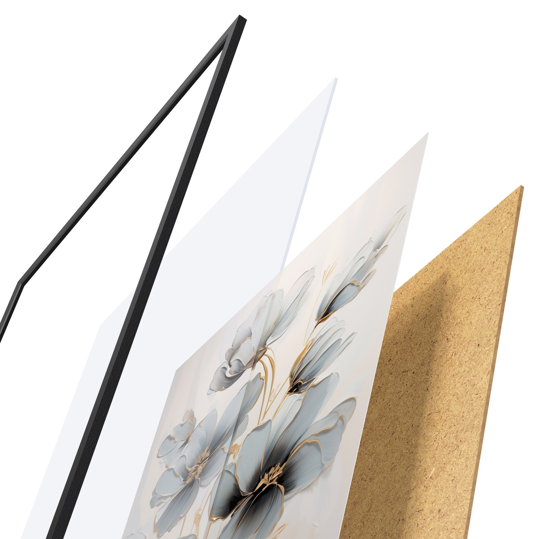 Постер складається з рами, оргскла, надрукованого зображення та підкладки з ДСП. Завдяки кріпленням на звороті плакат можна одразу ж повісити на стіну.