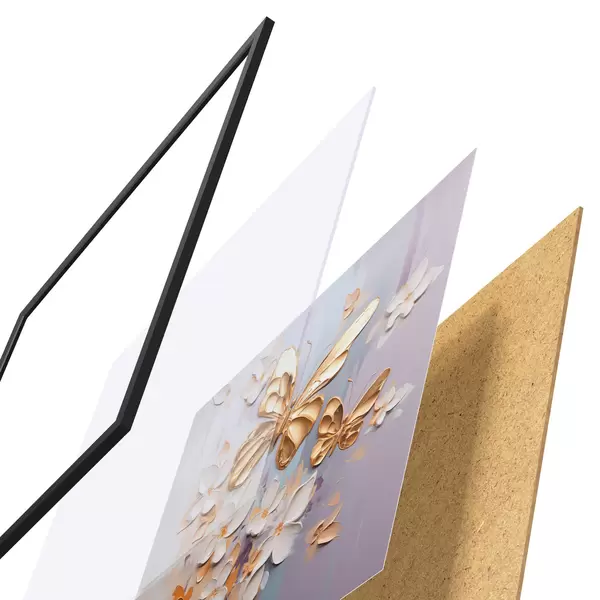 Постер складається з рами, оргскла, надрукованого зображення та підкладки з ДСП. Завдяки кріпленням на звороті плакат можна одразу ж повісити на стіну.