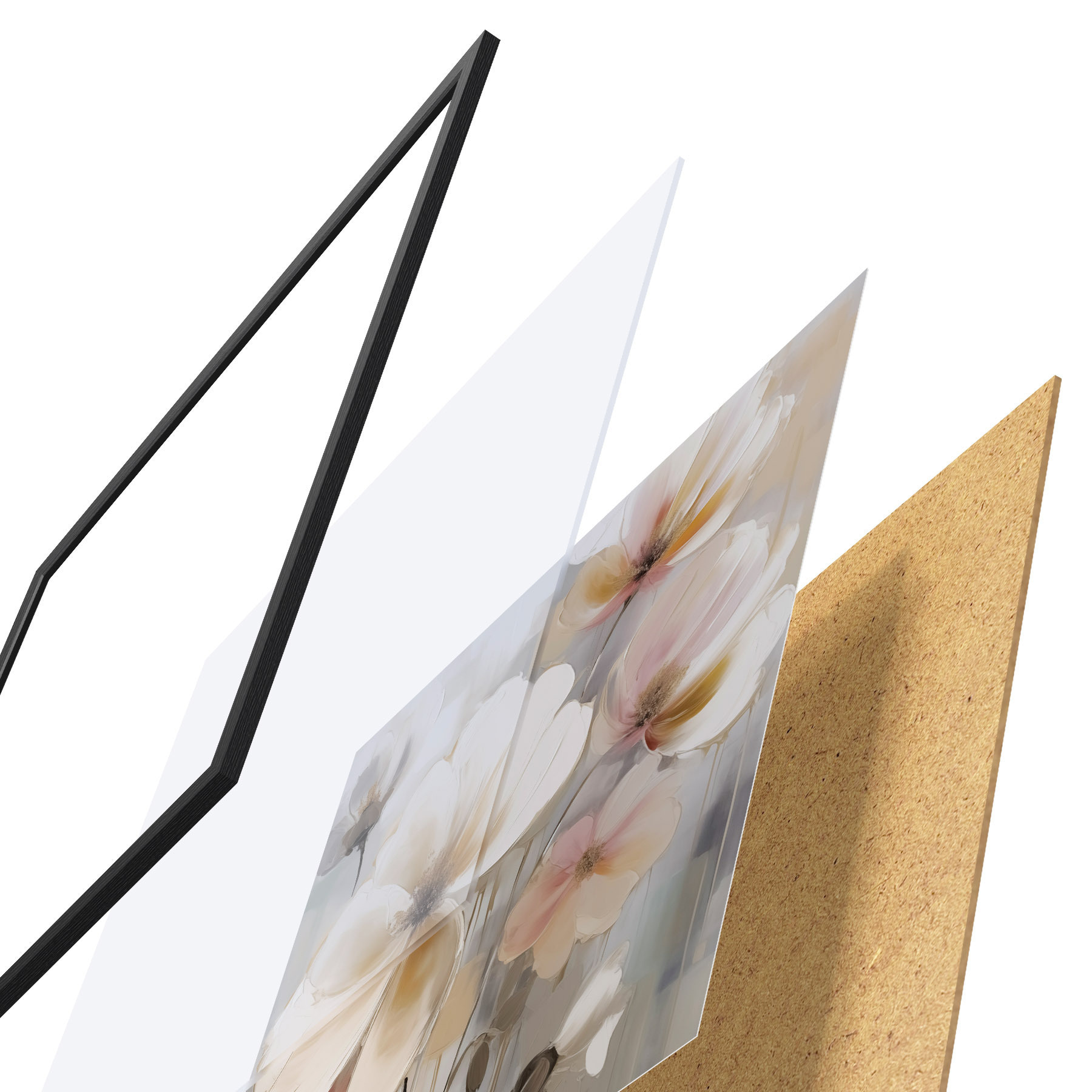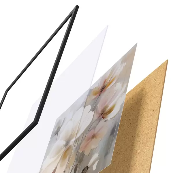 Постер складається з рами, оргскла, надрукованого зображення та підкладки з ДСП. Завдяки кріпленням на звороті плакат можна одразу ж повісити на стіну.