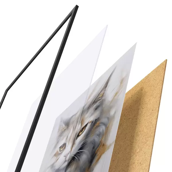 Постер складається з рами, оргскла, надрукованого зображення та підкладки з ДСП. Завдяки кріпленням на звороті плакат можна одразу ж повісити на стіну.