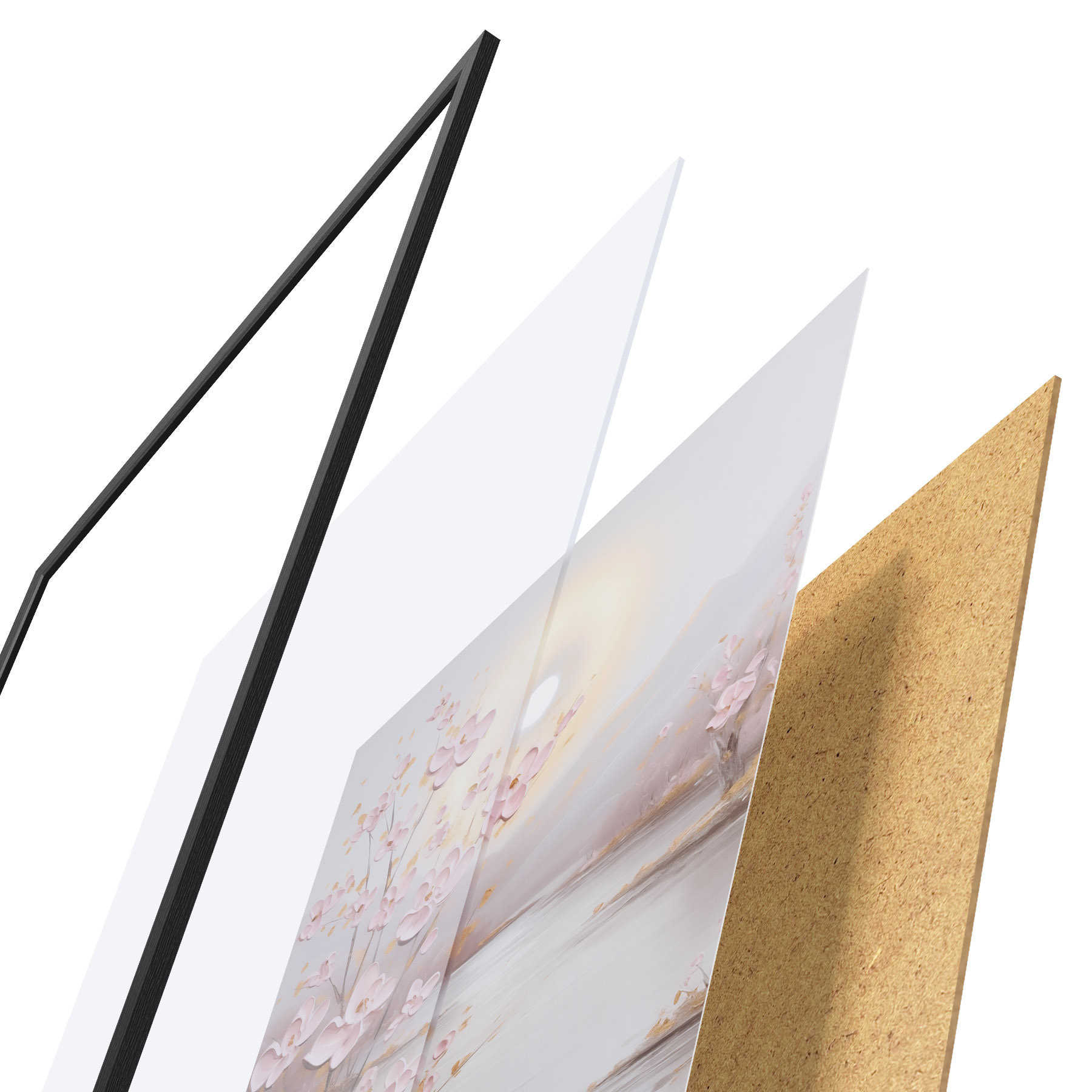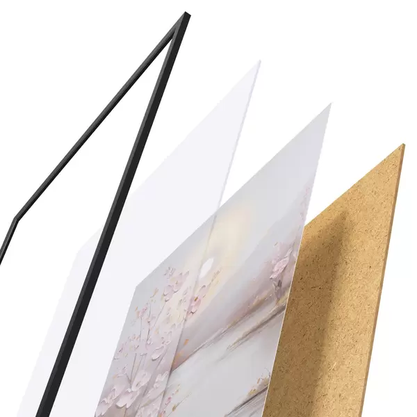 Постер складається з рами, оргскла, надрукованого зображення та підкладки з ДСП. Завдяки кріпленням на звороті плакат можна одразу ж повісити на стіну.