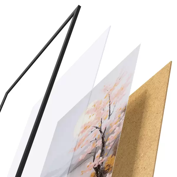 Постер складається з рами, оргскла, надрукованого зображення та підкладки з ДСП. Завдяки кріпленням на звороті плакат можна одразу ж повісити на стіну.