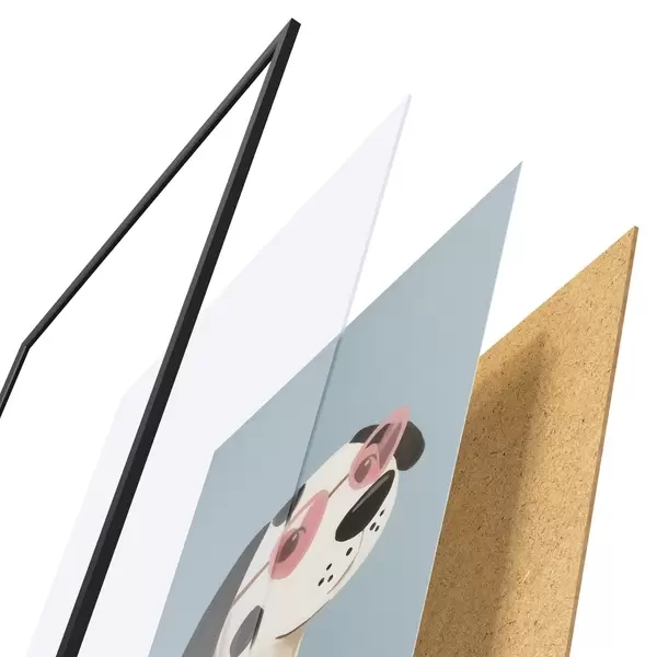 Постер складається з рами, оргскла, надрукованого зображення та підкладки з ДСП. Завдяки кріпленням на звороті плакат можна одразу ж повісити на стіну.