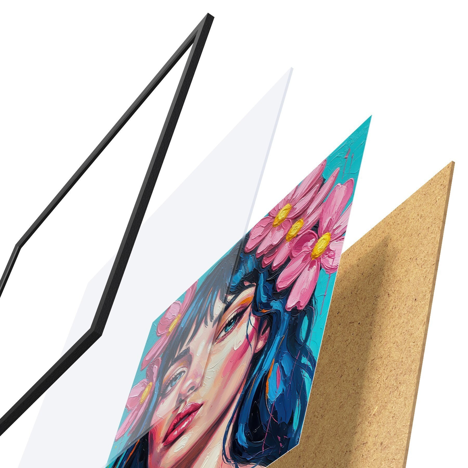 Постер складається з рами, оргскла, надрукованого зображення та підкладки з ДСП. Завдяки кріпленням на звороті плакат можна одразу ж повісити на стіну.