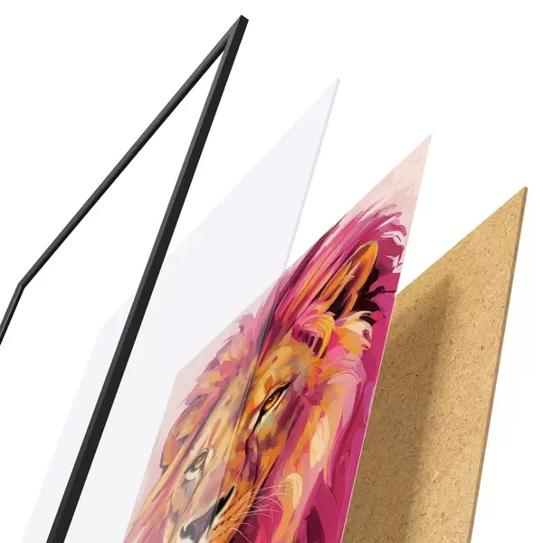 Постер складається з рами, оргскла, надрукованого зображення та підкладки з ДСП. Завдяки кріпленням на звороті плакат можна одразу ж повісити на стіну.