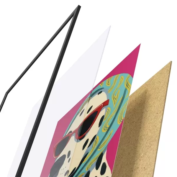 Постер складається з рами, оргскла, надрукованого зображення та підкладки з ДСП. Завдяки кріпленням на звороті плакат можна одразу ж повісити на стіну.