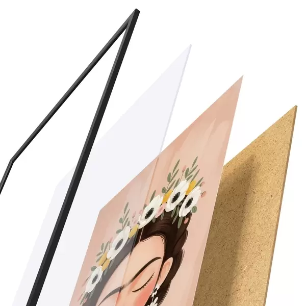 Постер складається з рами, оргскла, надрукованого зображення та підкладки з ДСП. Завдяки кріпленням на звороті плакат можна одразу ж повісити на стіну.