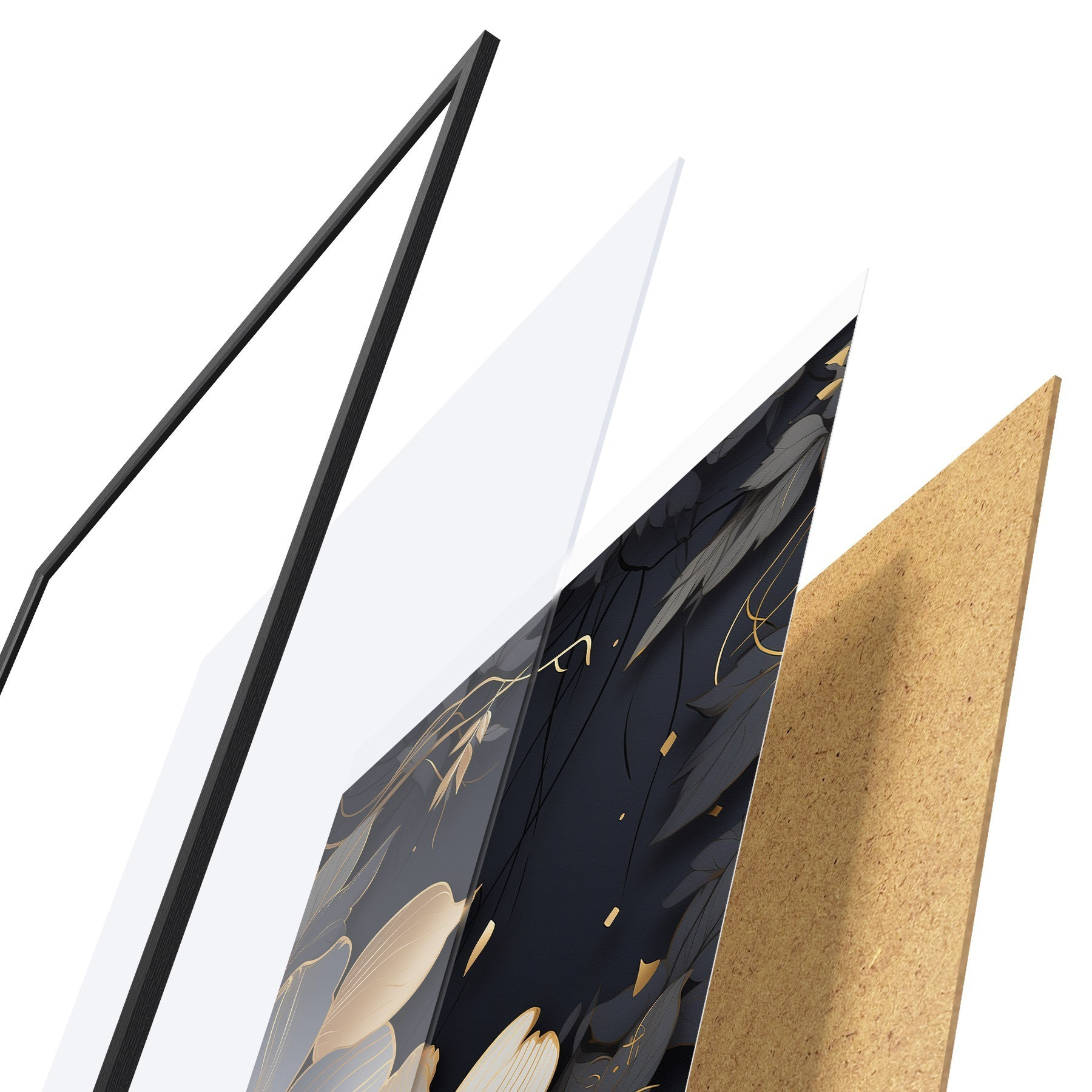 Постер складається з рами, оргскла, надрукованого зображення та підкладки з ДСП. Завдяки кріпленням на звороті плакат можна одразу ж повісити на стіну.