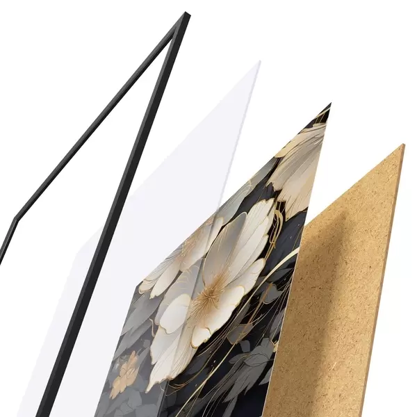 Постер складається з рами, оргскла, надрукованого зображення та підкладки з ДСП. Завдяки кріпленням на звороті плакат можна одразу ж повісити на стіну.