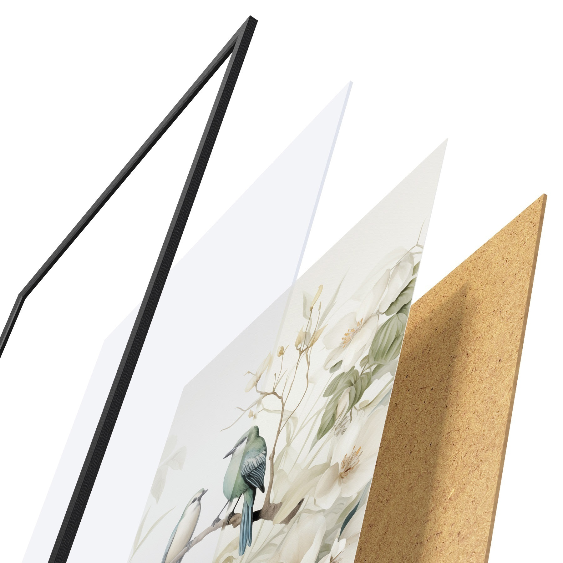 Постер складається з рами, оргскла, надрукованого зображення та підкладки з ДСП. Завдяки кріпленням на звороті плакат можна одразу ж повісити на стіну.
