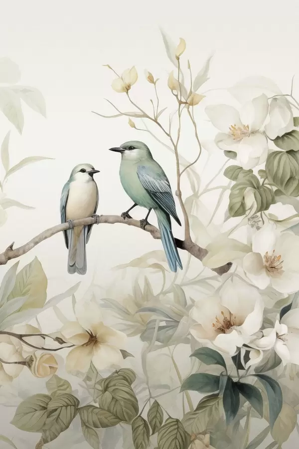 Постер на стіну Дві пташки на гілках жасмину Nr f46896