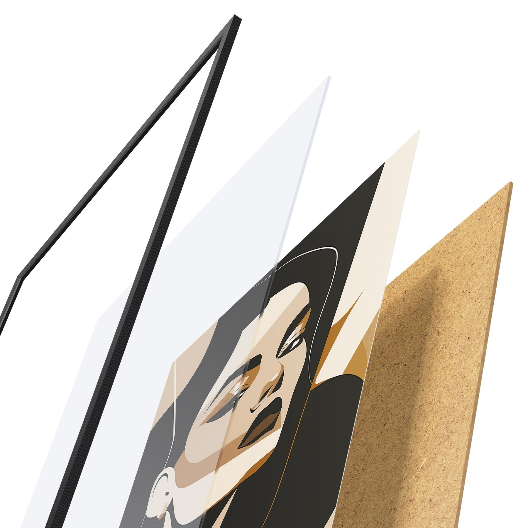 Постер складається з рами, оргскла, надрукованого зображення та підкладки з ДСП. Завдяки кріпленням на звороті плакат можна одразу ж повісити на стіну.
