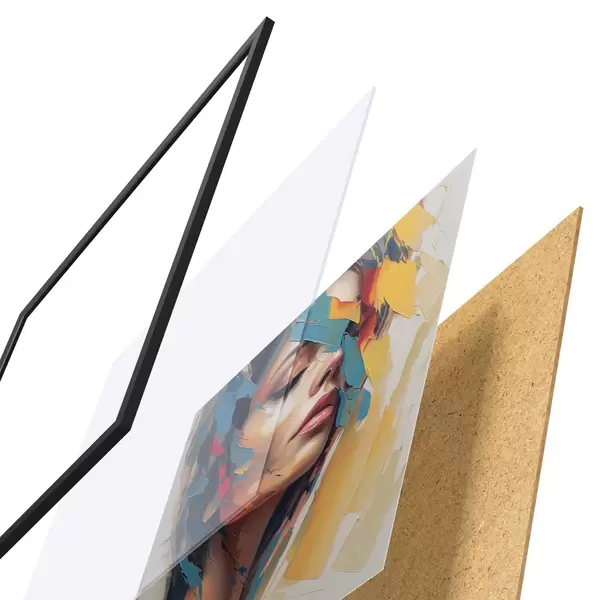 Постер складається з рами, оргскла, надрукованого зображення та підкладки з ДСП. Завдяки кріпленням на звороті плакат можна одразу ж повісити на стіну.