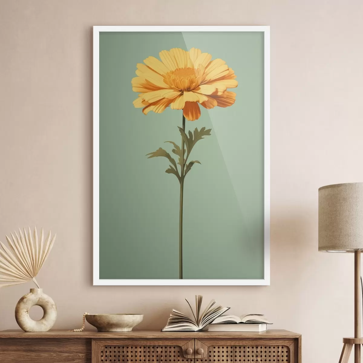 Постер на стіну Жовта календула на м'ятному тлі в мінімалістичному стилі Nr f46926