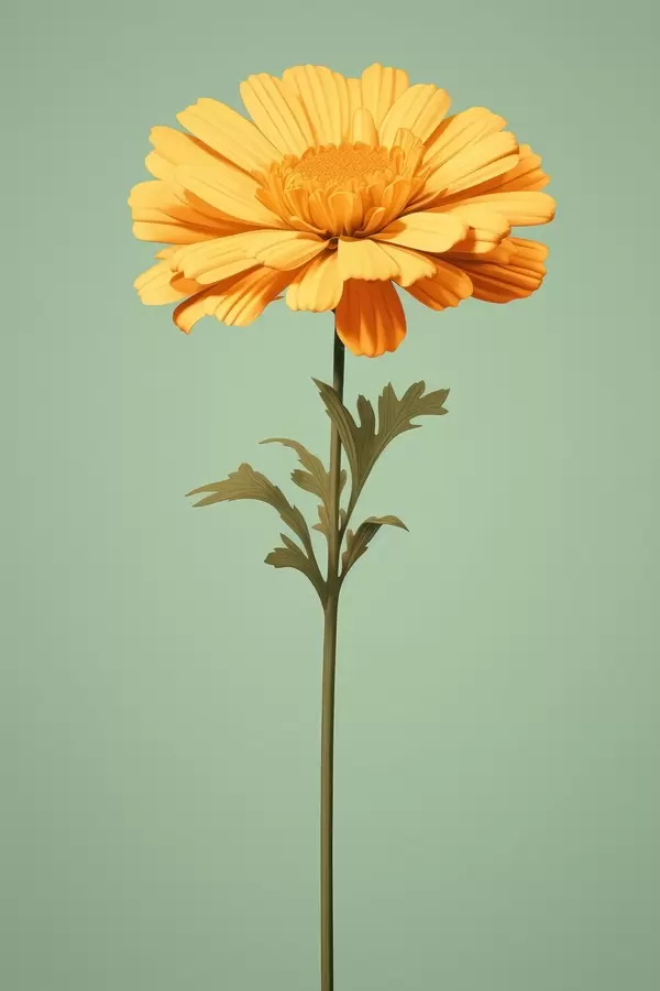 Постер на стіну Жовта календула на м'ятному тлі в мінімалістичному стилі Nr f46926