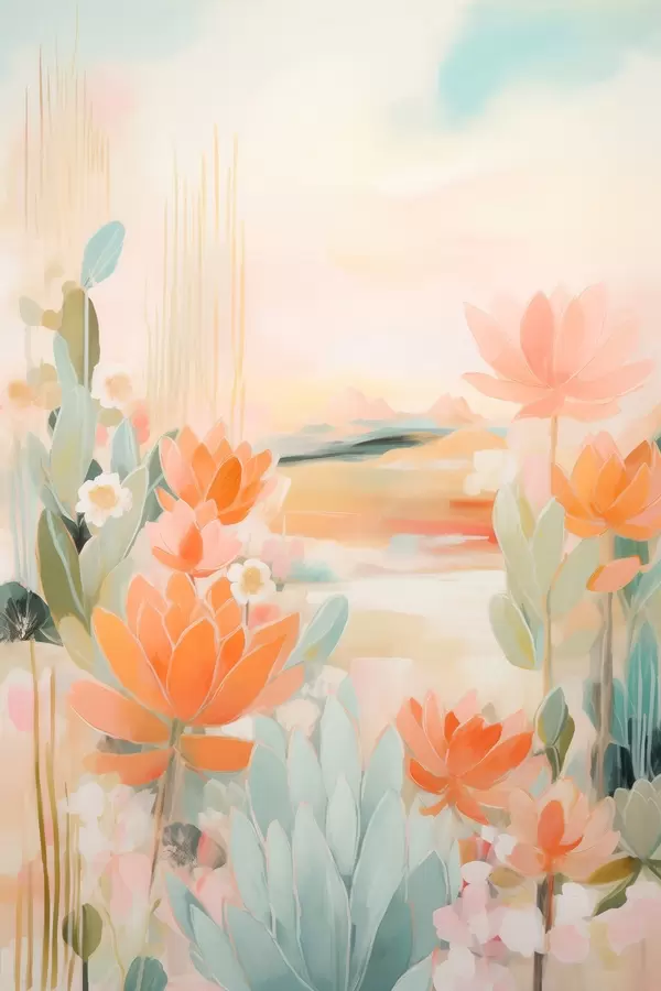 Постер на стіну Квітковий пейзаж у рожево-блакитних тонах у сучасному стилі живопису Nr f46931