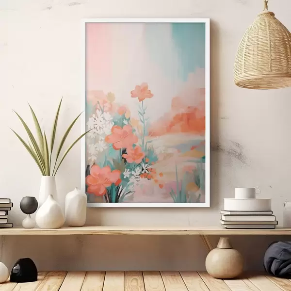 Постер на стіну Абстрактний квітковий пейзаж у рожево-блакитній гамі Nr f46932