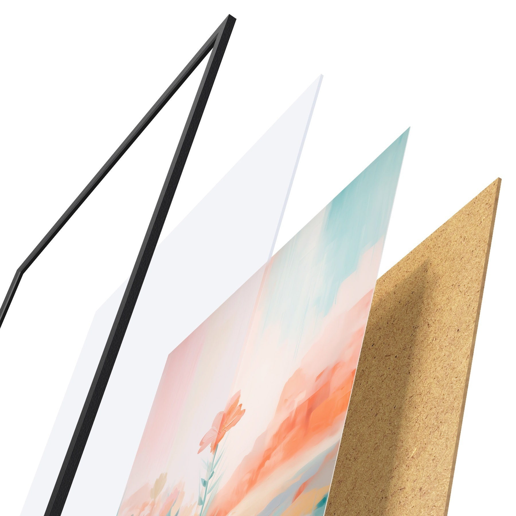 Постер складається з рами, оргскла, надрукованого зображення та підкладки з ДСП. Завдяки кріпленням на звороті плакат можна одразу ж повісити на стіну.