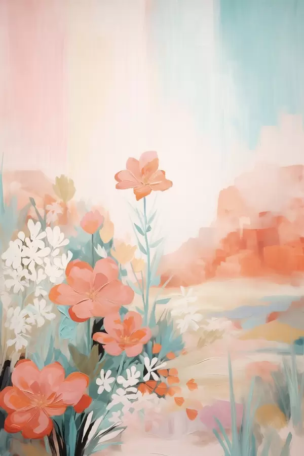 Постер на стіну Абстрактний квітковий пейзаж у рожево-блакитній гамі Nr f46932