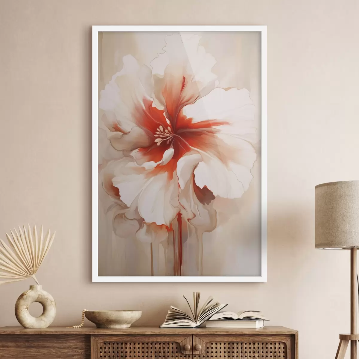 Постер на стіну Крупний план біло-червоної квітки з напівпрозорими пелюстками і струмками фарби, що стікають Nr f46941