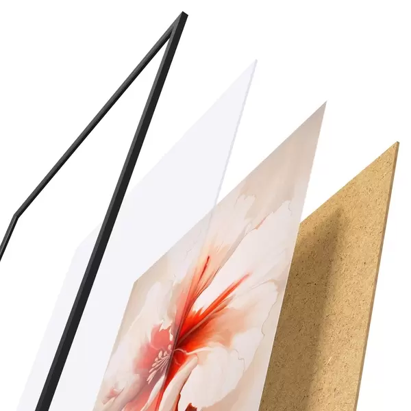 Постер складається з рами, оргскла, надрукованого зображення та підкладки з ДСП. Завдяки кріпленням на звороті плакат можна одразу ж повісити на стіну.