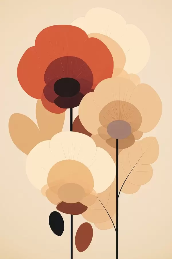Постер на стіну Абстрактні квіти в теплій бежевій палітрі в мінімалістичному стилі Nr f46942