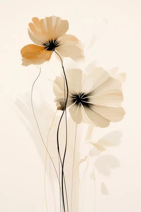 Постер на стіну Квіти в бежево-персиковій гамі з темними центрами в мінімалістичному стилі Nr f46945