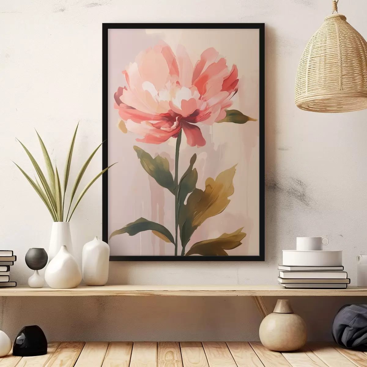 Постер на стіну Півонія з коралово-рожевими пелюстками в стилі сучасної художньої ілюстрації Nr f46948