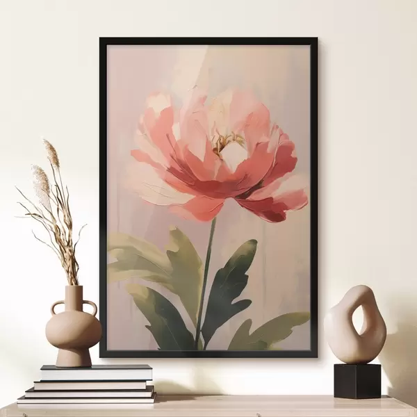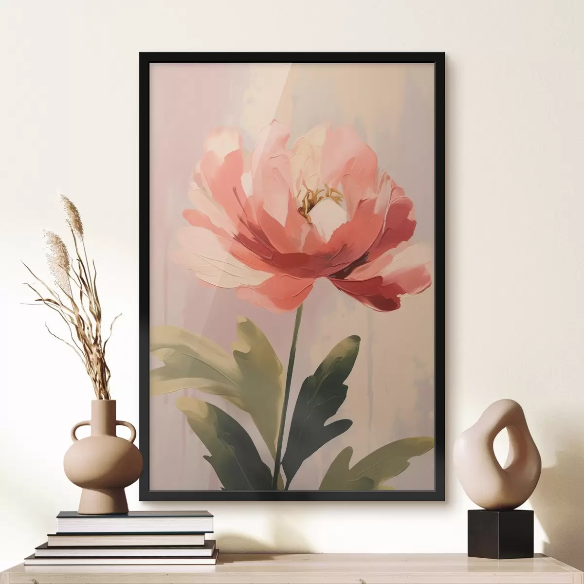 Постер на стіну Коралова півонія на пастельному тлі в стилі сучасної художньої ілюстрації Nr f46949