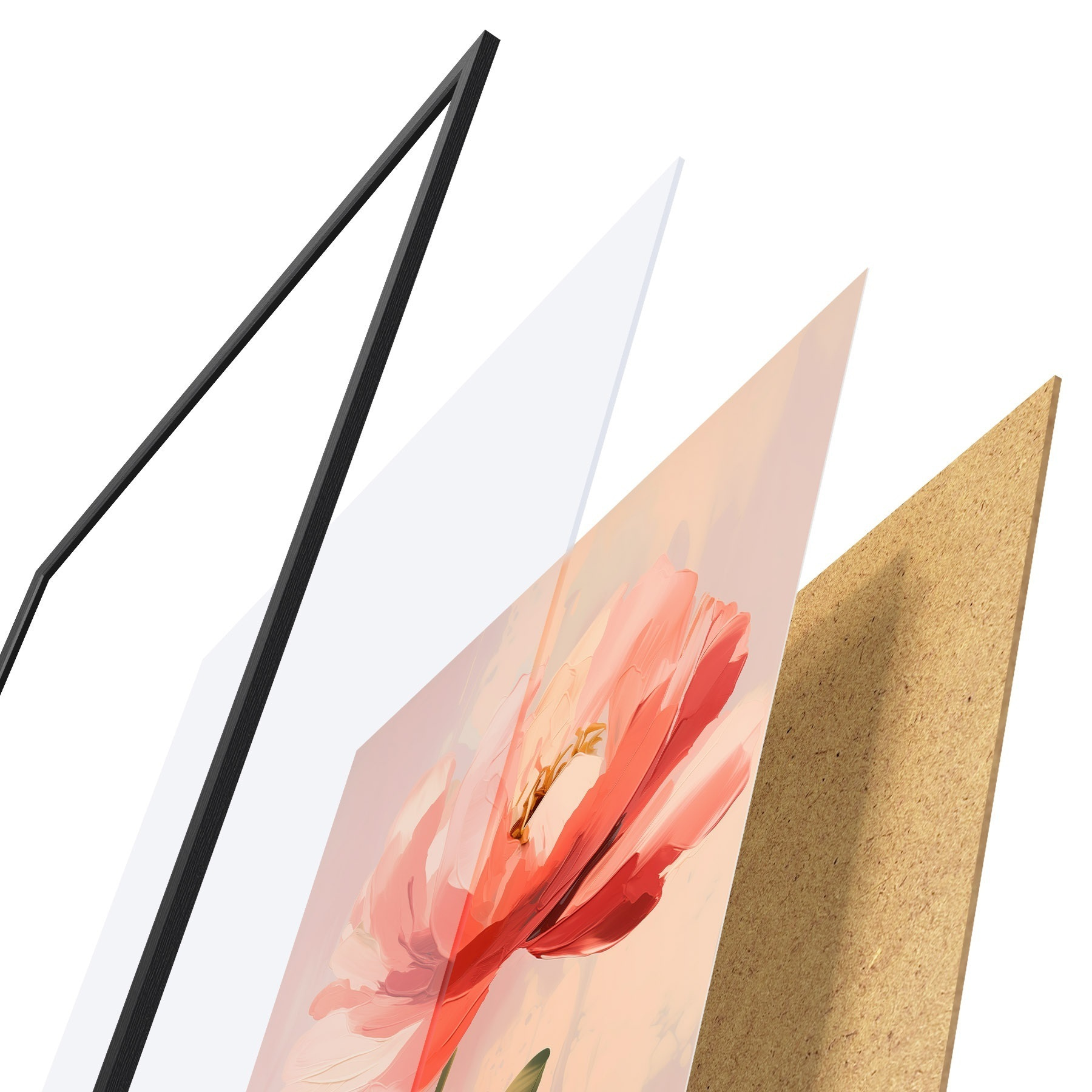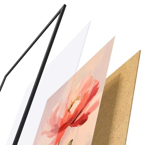 Постер складається з рами, оргскла, надрукованого зображення та підкладки з ДСП. Завдяки кріпленням на звороті плакат можна одразу ж повісити на стіну.