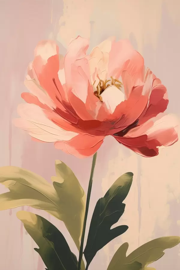 Постер на стіну Коралова півонія на пастельному тлі в стилі сучасної художньої ілюстрації Nr f46949