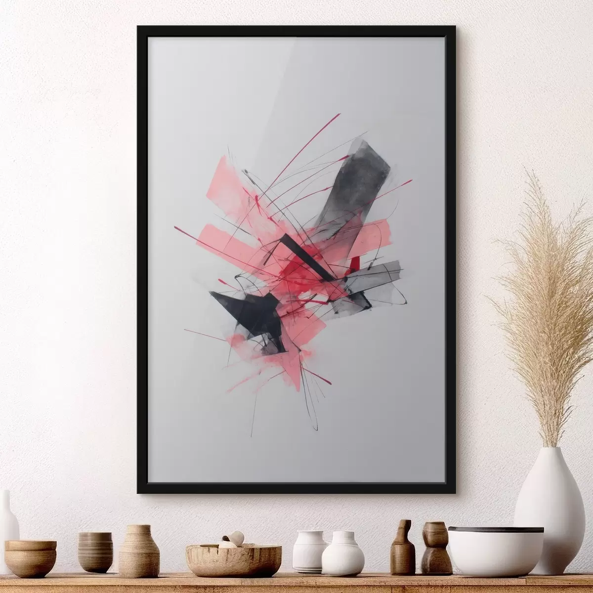 Постер на стіну Абстрактний малюнок з рожевими та чорними геометричними елементами Nr f46950