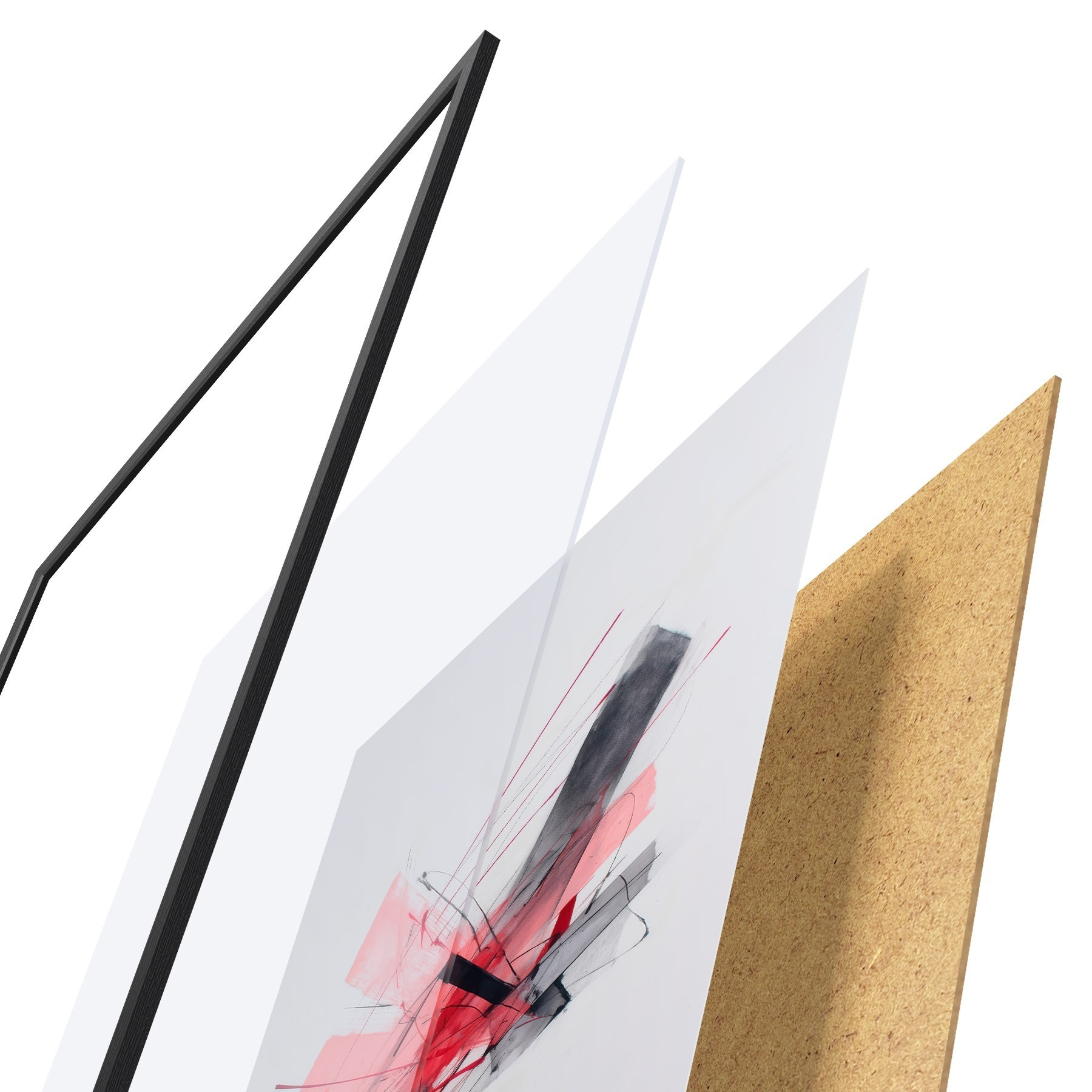 Постер складається з рами, оргскла, надрукованого зображення та підкладки з ДСП. Завдяки кріпленням на звороті плакат можна одразу ж повісити на стіну.
