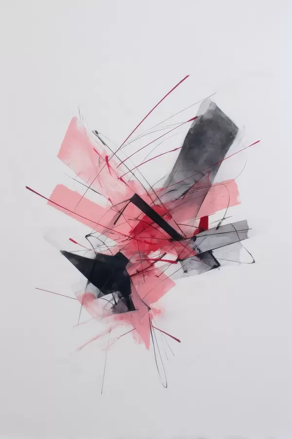 Постер на стіну Абстрактний малюнок з рожевими та чорними геометричними елементами Nr f46950