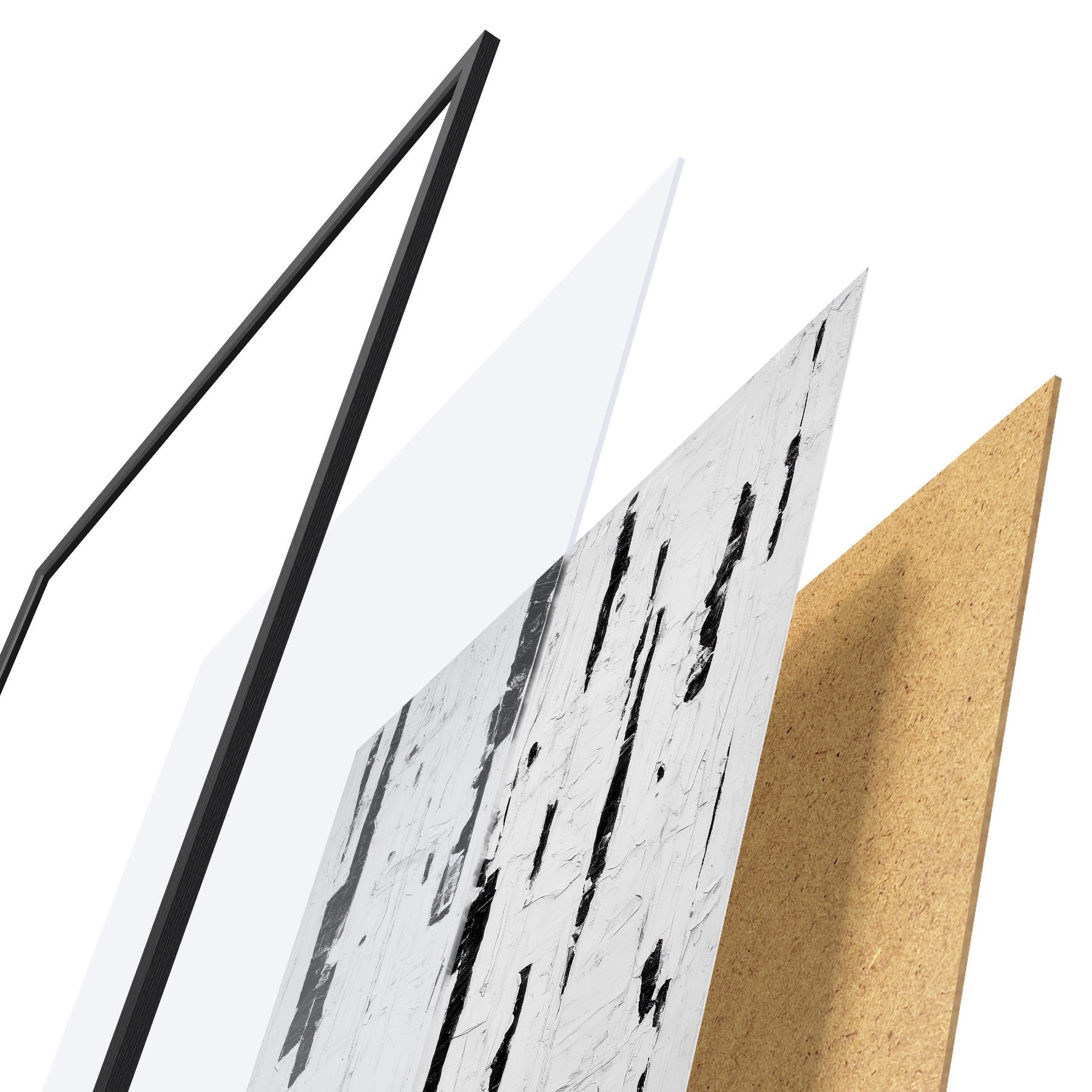 Постер складається з рами, оргскла, надрукованого зображення та підкладки з ДСП. Завдяки кріпленням на звороті плакат можна одразу ж повісити на стіну.