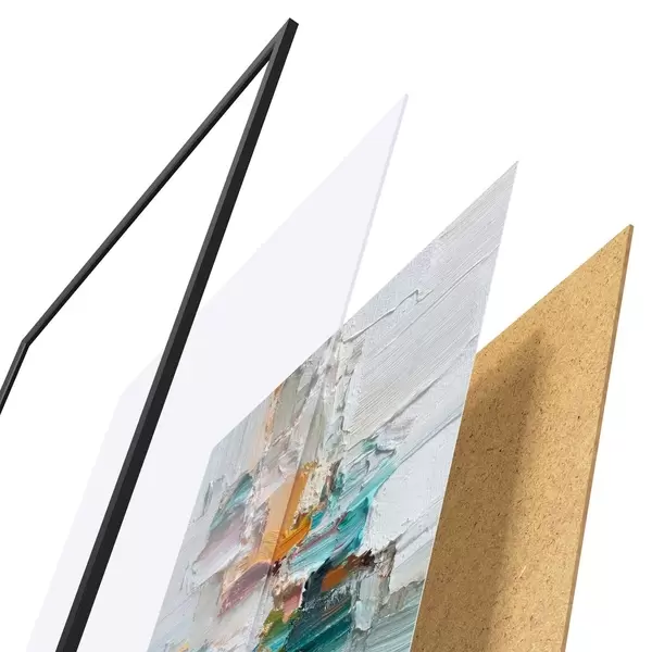 Постер складається з рами, оргскла, надрукованого зображення та підкладки з ДСП. Завдяки кріпленням на звороті плакат можна одразу ж повісити на стіну.