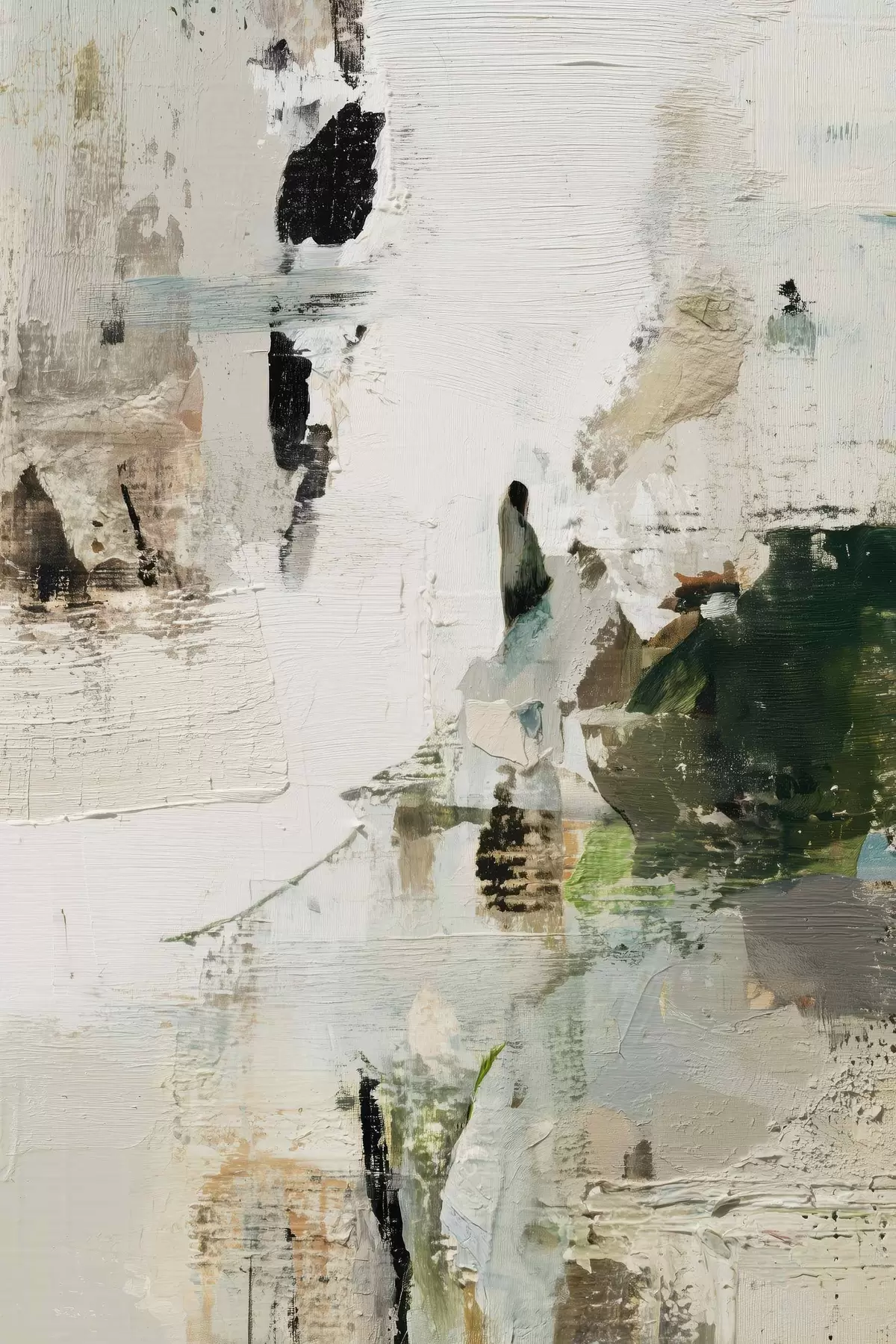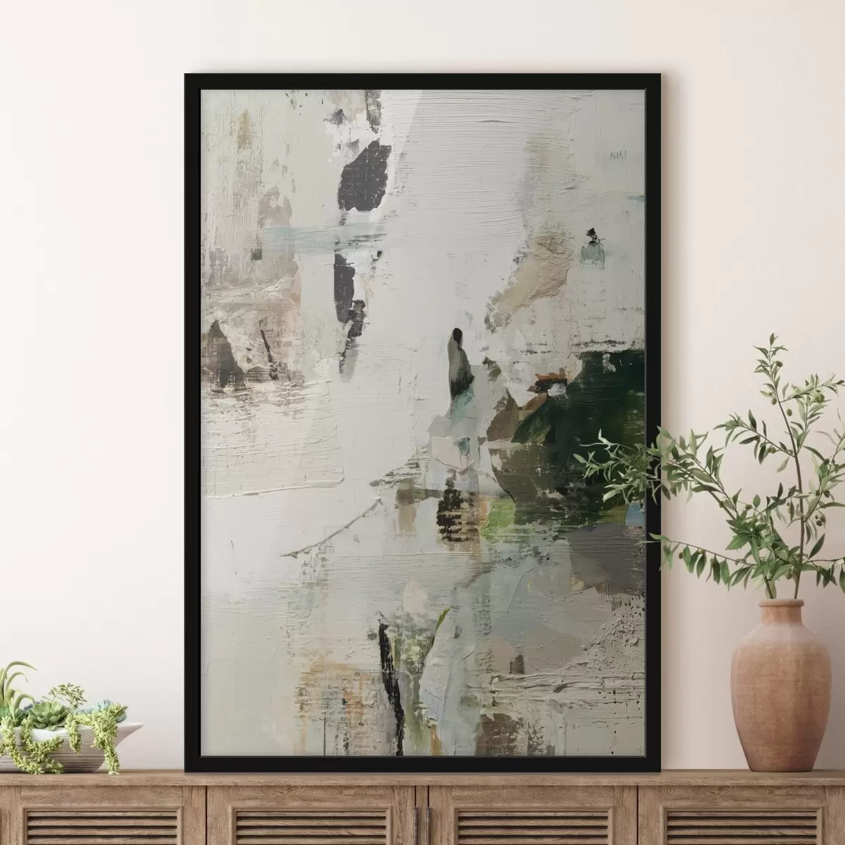 Постер на стіну Абстрактна композиція в пастельних тонах з темно-зеленими акцентами в стилі олійного живопису Nr f46960