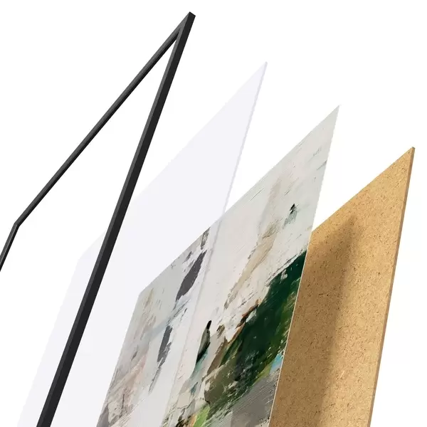 Постер складається з рами, оргскла, надрукованого зображення та підкладки з ДСП. Завдяки кріпленням на звороті плакат можна одразу ж повісити на стіну.