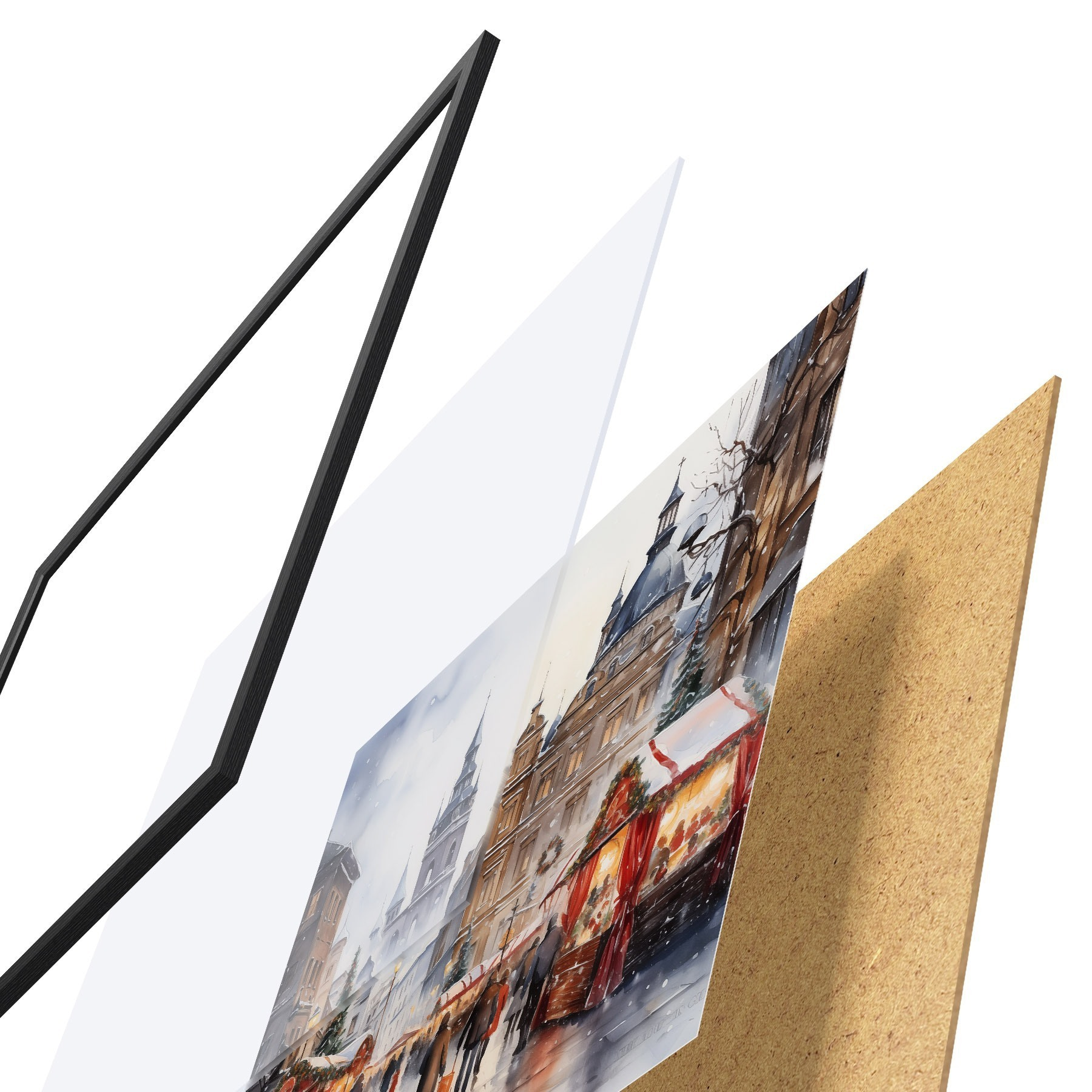 Постер складається з рами, оргскла, надрукованого зображення та підкладки з ДСП. Завдяки кріпленням на звороті плакат можна одразу ж повісити на стіну.